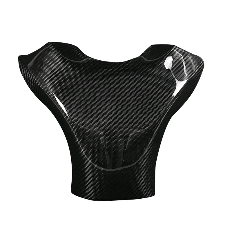 Cubierta fabricada en fibra de carbono real, diseñada para proteger y embellecer la parte inferior del depósito de la Kawasaki ZX-6R. Ideal para completar un conjunto estético en carbono con un acabado limpio y agresivo.