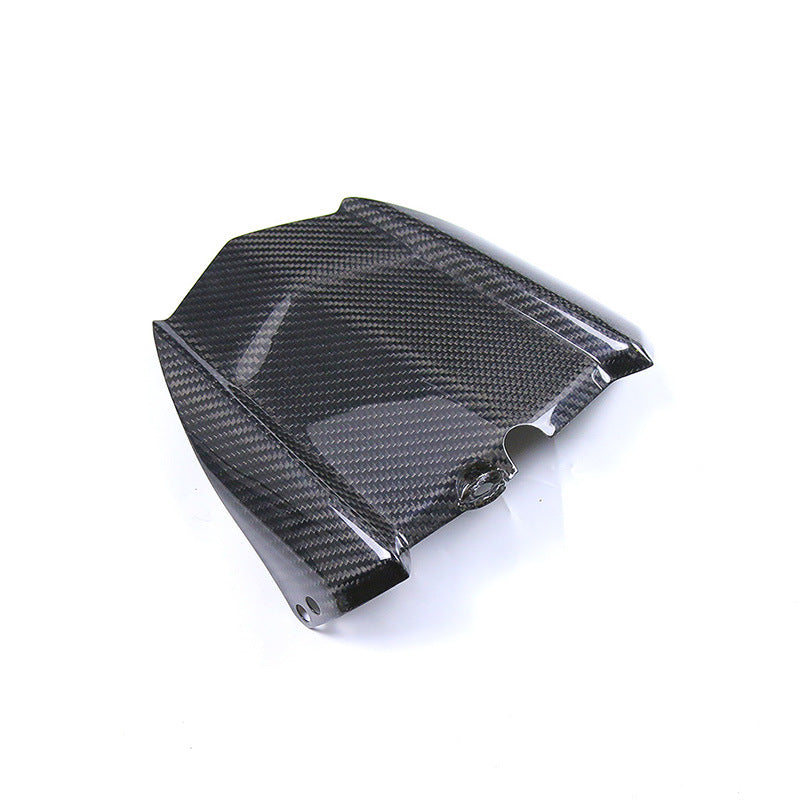 Guardabarros trasero fabricado en fibra de carbono auténtica, diseñado específicamente para Yamaha MT-09. Esta pieza protege eficazmente contra salpicaduras de agua, barro y gravilla, manteniendo limpia la zona del amortiguador y la parte trasera de la moto. Además, aporta una estética más deportiva y ligera con un acabado tipo competición.