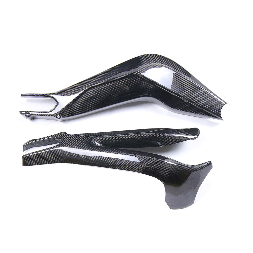 Cubierta protectora del basculante fabricada en fibra de carbono auténtica, diseñada específicamente para Yamaha MT-09 y FZ-09 (modelos 2013 a 2020). Esta pieza protege eficazmente el basculante trasero contra piedras, abrasión y salpicaduras, al mismo tiempo que aporta una estética más agresiva y ligera con acabado tipo competición.